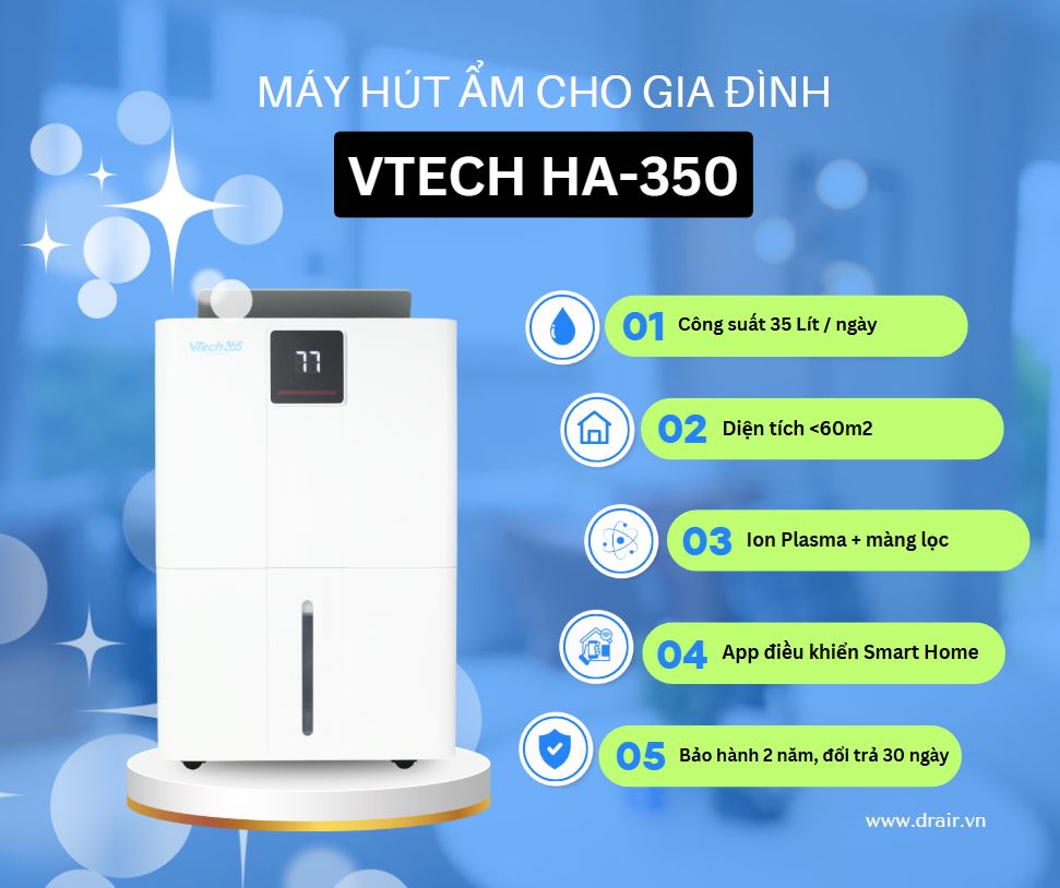 Đừng để nấm mốc và độ ẩm cao ảnh hưởng đến cuộc sống của bạn. Liên hệ ngay với Dr.Air để sở hữu giải pháp kiểm soát không khí chuyên nghiệp VTech HA-350!