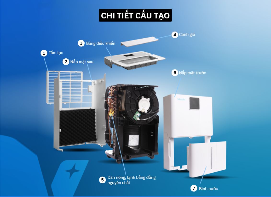 - Hiệu suất ổn định: Duy trì khả năng hút ẩm mạnh mẽ 35L/ngày trong thời gian dài mà không bị suy giảm hiệu suất.
